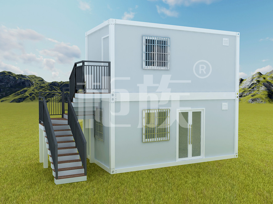 Materials: corner columns and main beams are galvanized cold-rolled steel, secondary beam is galvanized square tube, wall panel is glass wool sandwich panel, magnesium board as base of the floor, PVC decorative panel. Plastic steel window, steel door, 6 ㎡ electrical cable