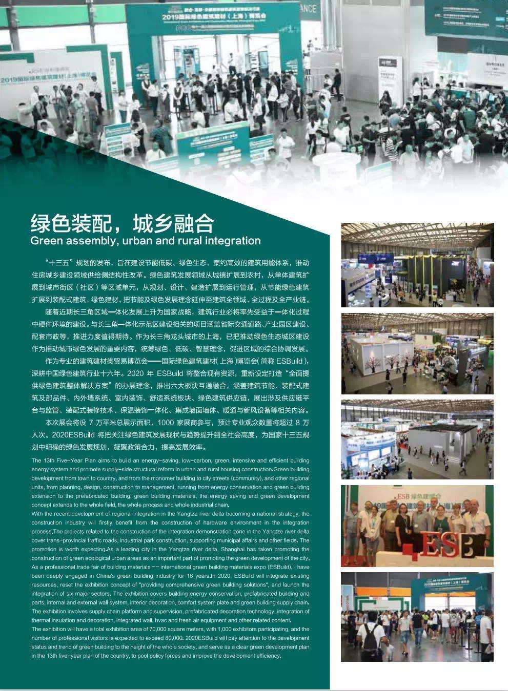 2020國(guó)際綠色建筑建材(上海)博覽會(huì)(2020ESBuild)于7月15日正式拉開(kāi)帷幕。2020ESBuild以打造“全面提供綠色建筑整體解決方案”為理念,推出六大板塊互通融合,涵蓋建筑節(jié)能、裝配式建筑及部品件、內(nèi)外墻系統(tǒng)、室內(nèi)裝飾、舒適系統(tǒng)、綠色建筑供應(yīng)鏈,展出涉及供應(yīng)鏈平臺(tái)與監(jiān)管、裝配式裝修技術(shù)、保溫裝飾一體化、集成墻面墻體、暖通與新風(fēng)設(shè)備等相關(guān)內(nèi)容。