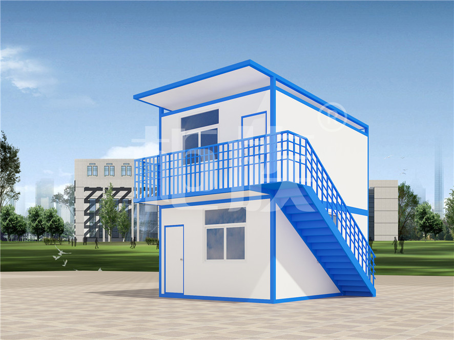 多個(gè)箱體拼接而成,藍(lán)白色的外觀簡潔流暢。工廠生產(chǎn)、成品直接運(yùn)輸至使用場地,配套設(shè)施齊全,即到即用。