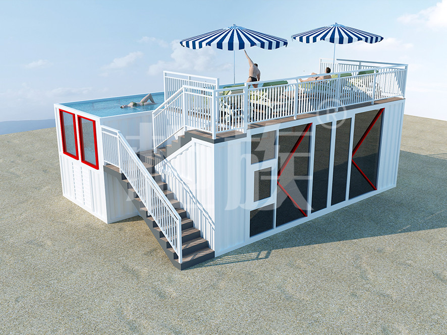 集裝箱泳池可以完全在工廠預(yù)制完成,占地小、造價(jià)低,適合庭院、海邊的度假地、以及其他公共游樂場所使用。