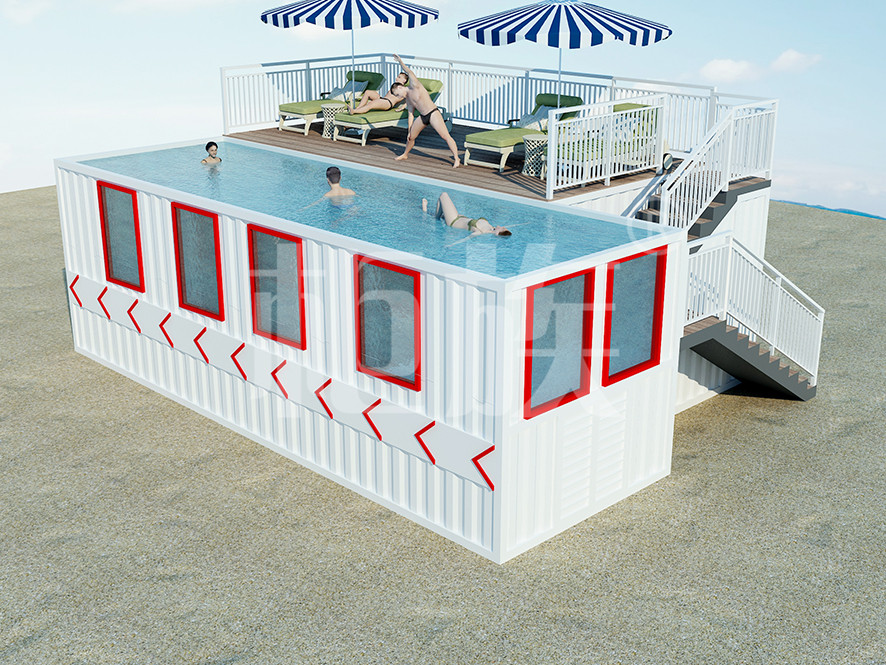 柜族出品的集裝箱游泳池占地面積少、造價(jià)低,適合庭院、度假區(qū)及游樂場所使用。