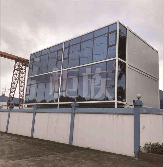 該打包箱辦公室上下三層,在設(shè)計(jì)上注重功能的實(shí)用性和選材用材的環(huán)保性。總體約可容納50人的辦公和會(huì)議需求。